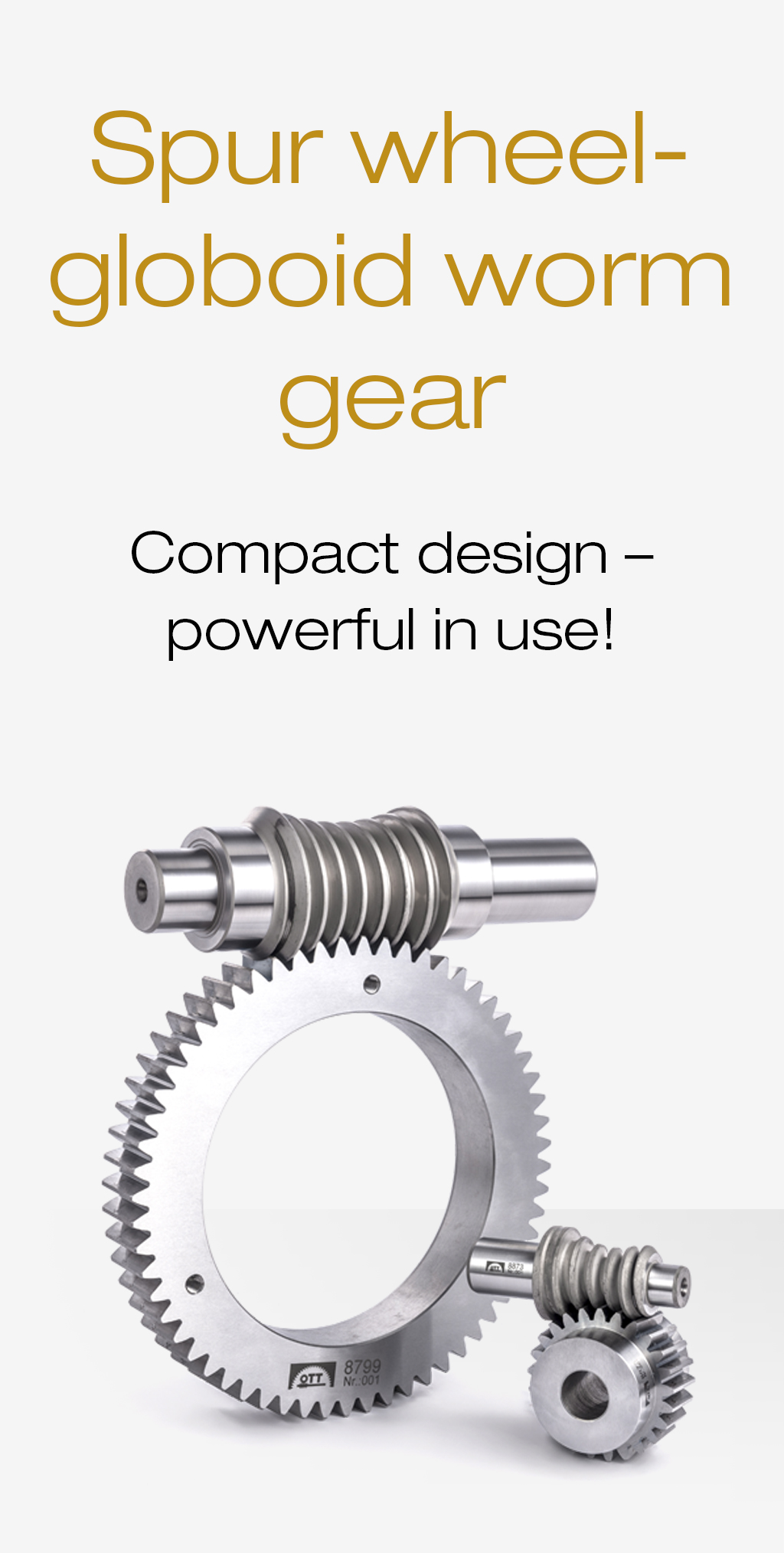Our globoid worm enables maximum torque transmission with minimal installation space – ideal for high-performance drives and in the usual OTT quality.
